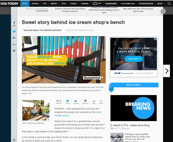 - Nominate your neighbor! We asked the community through social and earned media to nominate a neighbor to win one of our benches.