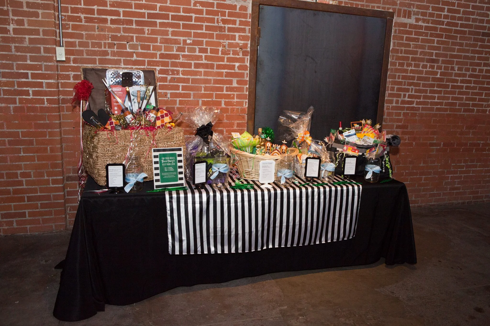 Raffle prizes galore! All packages had a home theme. And our wonderful volunteers who sold tickets -- decked out in plaid aprons, reminiscent of Dorothy.