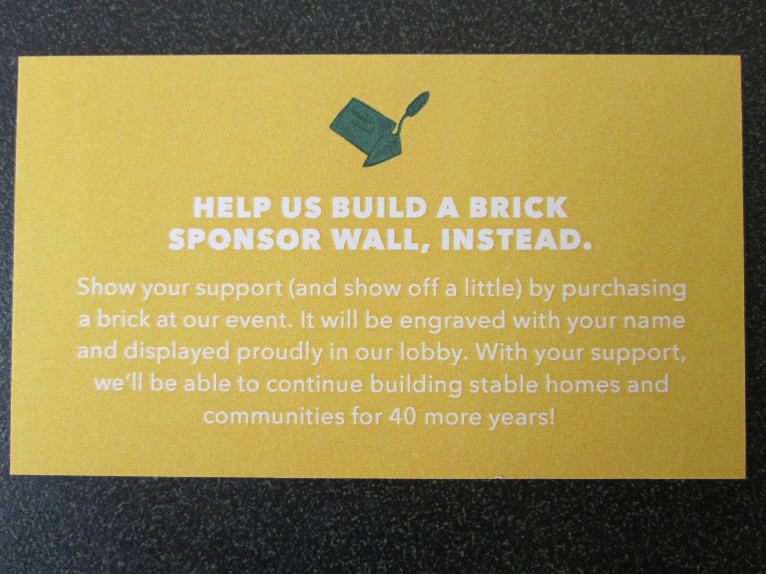 Don't forget to buy a brick! Bricks were sold at the event to help build our donor wall.